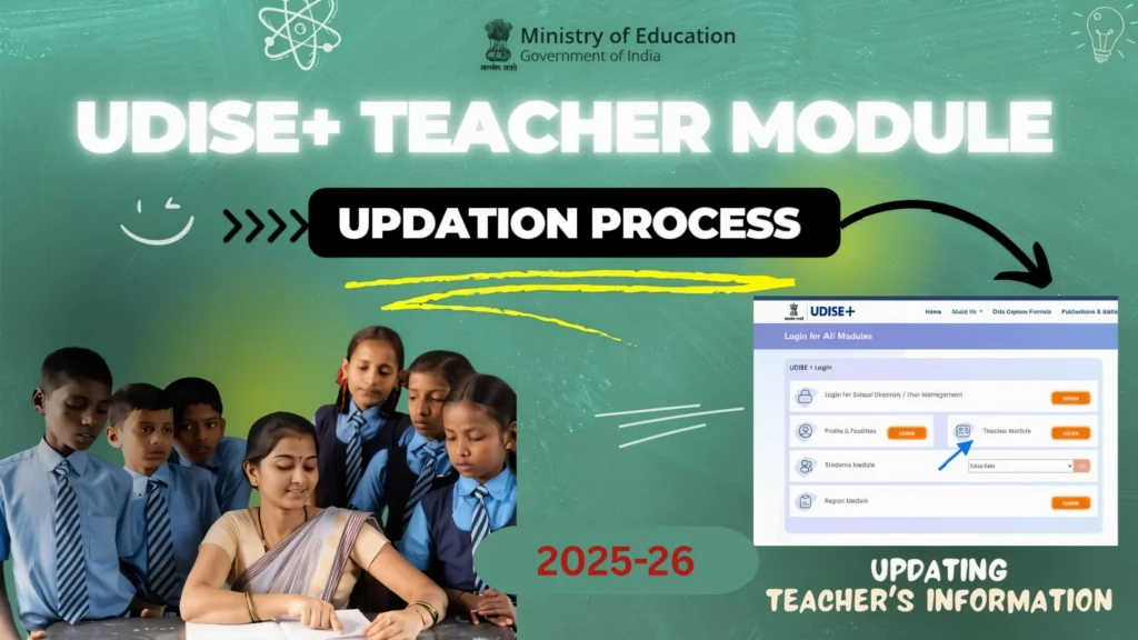 The UDISE+ Teacher Module is the part of the national school‑education portal where you enter details about your teaching and non‑teaching staff: qualifications, joining dates, transfers, training, etc. TeluguVidya+2Education for All in India+2